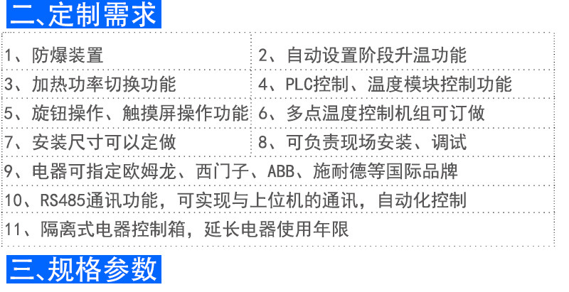 2、加热器设计合理,风阻小,加热均匀,无高、低温死角。